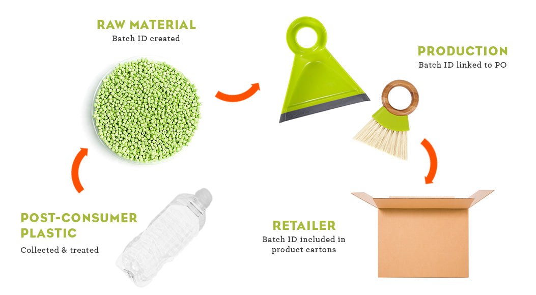 We’ve partnered with our manufacturers to integrate traceability into all our recycled plastic products. Every item is on its way to being GRS-certified, and we’ll be able to track the % of post-consumer recycled plastic used in each batch through a patented RFID technology.